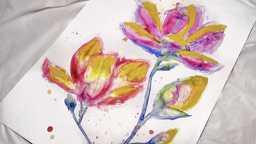МАГНОЛИЯ. ПОЛУПРОЗРАЧНАЯ ТЕХНИКА КИСТЬЮ-СПОНЖЕМ И ВОДОЙ