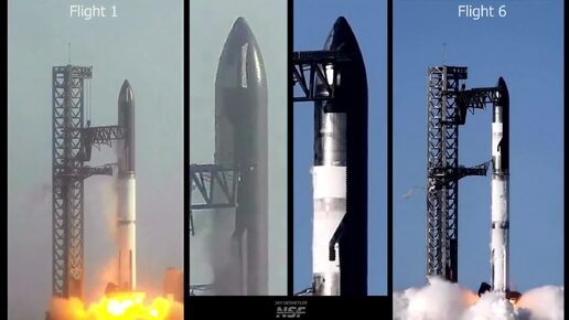 Сравнение запусков Starship IFT-1 с IFT-6