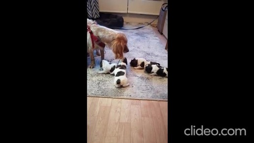 Щенки, раз, два, три, четыре. И мама Ева, пять. Все вышли первый раз гулять