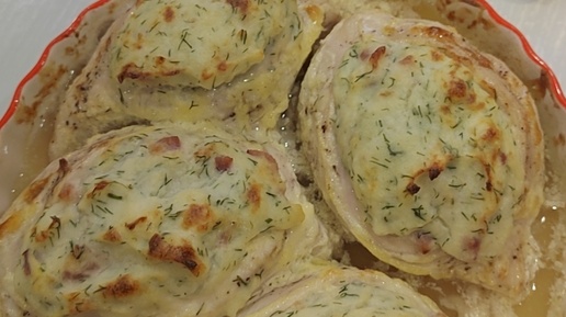Лодочки из куриного филе с пюре из цветной капусты и бекона