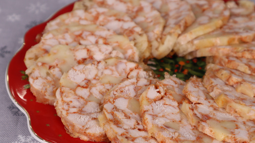 Домашняя ветчина из куриного филе и сыра или куриный рулет. Какая сочная, нежная. Буду готовить на Новогодний Стол