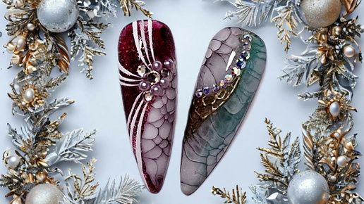 Растекашки. Змеиный принт. Новогодний маникюр 2025. МК