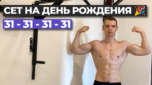 Сет на день рождения 💪🏻 31-31-31-31 (подтягивания-отжимания-приседания-отжимания) 🎉🥳