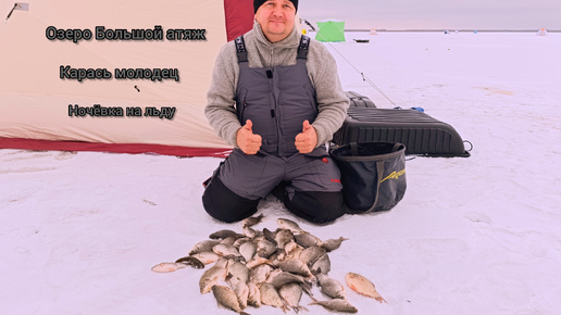 Рыбалка на льду с ночёвкой озеро Большой атяж ловля карася Сезон Первого льда 2024-2025