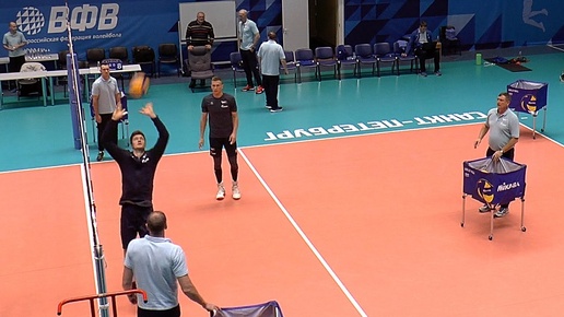 Волейбол. Тренировка. Связующие игроки. Игорь Кобзарь и Дмитрий Ковалев. Зенит Санкт-Петербург