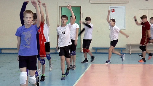 Детский волейбол. Мальчики. Тренировка. Разминка в движении