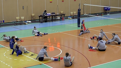 Волейбол. Девушки. Разминка перед игрой без мячей