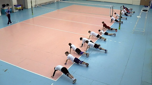 Детский волейбол. Мальчики. Тренировка. Разминка без мячей