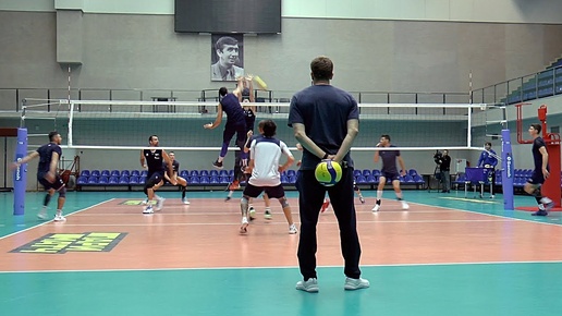 Волейбол. Атака. Тренировка. Команда Зенит Санкт-Петербург. Главный тренер Туомас Саммелвуо