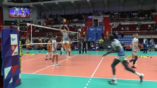Волейбол. Нападающий удар. Россия. Команды "Зенит" Санкт-Петербург и "Кузбасс" Кемерово.