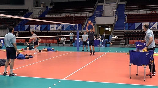 Волейбол. Тренировка. Связующие игроки. Игорь Кобзарь и Игорь Колодинский