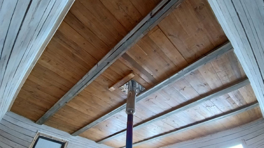 Сделал потолок в мастерской красивым. Использую любимые цвета в отделке. Спрятал технику на зиму в «гараж»