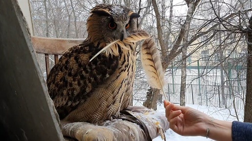 Снег дали! Сова в бешенстве от того, что ей не дают под ним сидеть