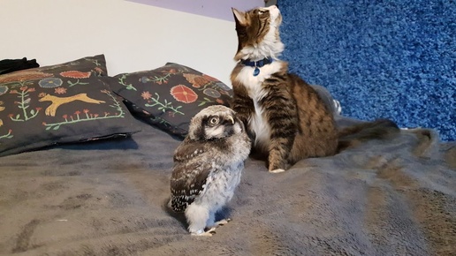 Совёнку Иве 22 дня. Коту Мурлоку становится всё сложнее