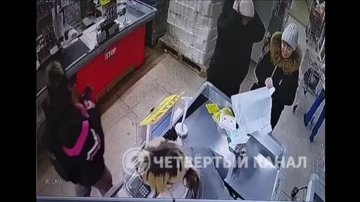 В наморднике водить надо! (Огромный бойцовский пес напал на мелкую собачонку в магазине Екатеринбурга)