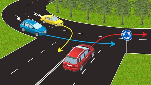 Водитель какого автомобиля нарушит правила при проезде кругового перекрестка?