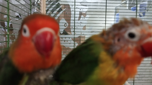 ПОПУГАИ НЕРАЗЛУЧНИКИ, ОДИН С ЛЫСОЙ ГОЛОВОЙ