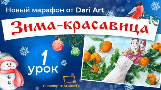 Марафон _Зима-красавица_, 1 урок - акварельный скетч с мандаринами