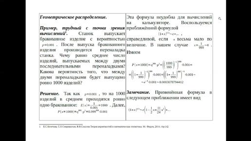 Геометрическое распределение. Задача, трудная с точки зрения вычислений.