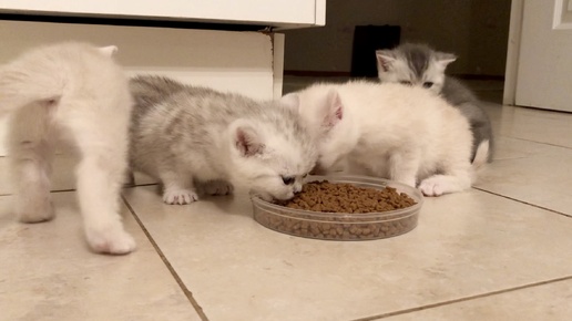 Предложили сегодня котятам специализированный сухой корм для малышей от 1 месяца. Конечно потом поили их еще молочком 🍼