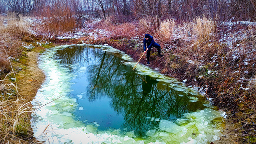 Пруд на даче с рыбой. Экстремальное купание зимой в речке!