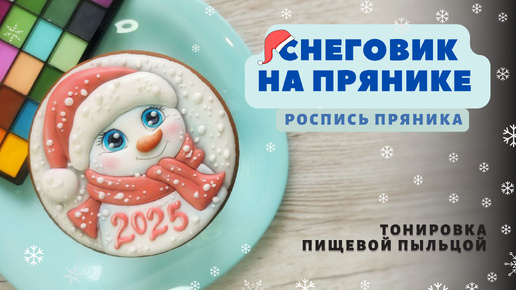 Простой пряник к новому году - СНЕГОВИК. Тонировка пыльцой. Роспись пряников для начинающих