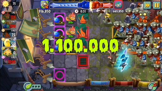 Победа на арене PvZ2: 1,1М очков с левым флангом! 🥇🧟