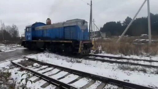 Далее: Тепловоз ЧМЭ3-1228 едет в лес вагонами вперёд.