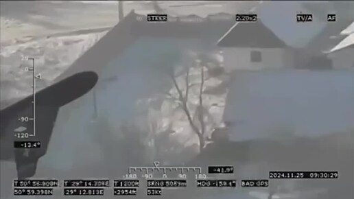 Перехват дрона-камикадзе "Герань-2" огнем с украинского Ми-8 восточнее города Коростень Житомирской области.