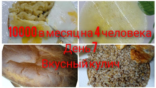 Месяц на 10000/ День 7/ Бюджетное меню на семью из 4 человек/Кулич/Ржаной хлеб