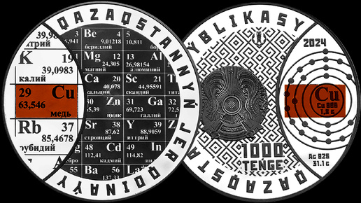 Новая монета Казахстана Cu (медь). Выпуск 2024 года.