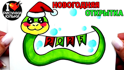 Новогодняя Открытка 2025 /Как Нарисовать Новогоднюю Открытку На Новый Год Змеи 2025