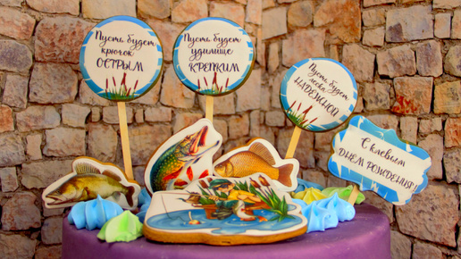 Декор для тортика Рыбаку. Любителю рыбной ловли. Легко - готовый декор.
