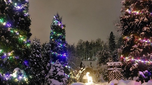 УКРАШАЕМ РАСТЕНИЯ В САДУ НОВОГОДНИМИ ОГНЯМИ
