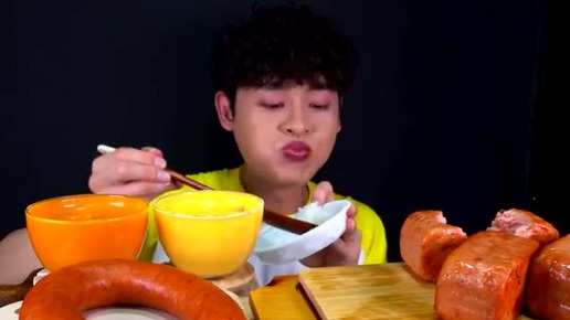 Рис с колбасой, соусом «Спам-чиз» и сыром MuKBang~!