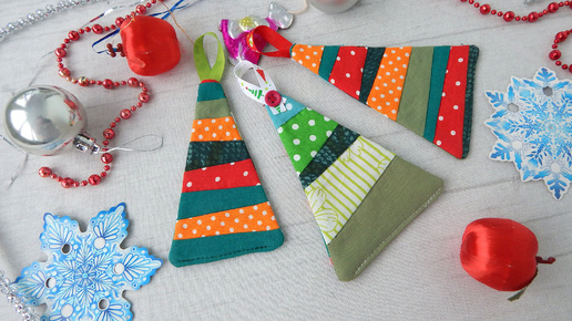 Удивить оригинальностью? ДА! По ускоренной схеме можно сшить новогодние подарки из любых обрезков. Ёлочки для Ёлки и не только... Пэчворк.