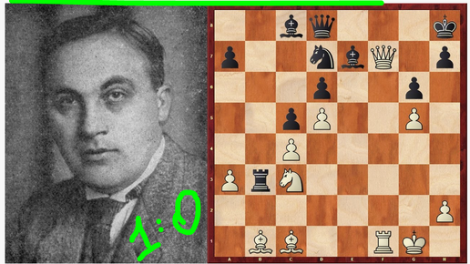 Ефим Боголюбов белыми прекрасно наказывает Генри Гроба (да, создателя дебюта 1. g4) за веселую игру в Дрездене, 1936. Индийская защита