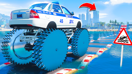 ПРОЕХАЛ ВОДНЫЕ КОЧКИ на ГИГАНТСКОЙ ДПС ЛАДЕ ПРИОРЕ на ПИЛАХ в ГТА 5 МОДЫ - ЭКСПЕРИМЕНТЫ в GTA 5 MODS