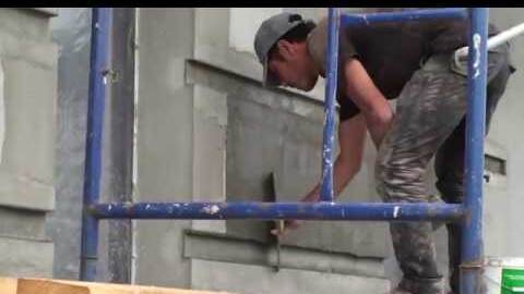 Перетяжка базового армирующего слоя, рустованный фасад, антирусты на доме