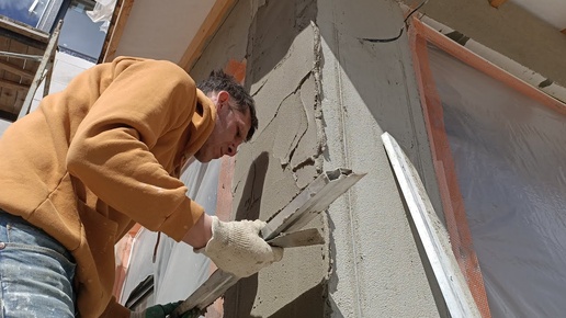 Дом из газобетона Ytong, штукатурка фасадов без утепления. Грунт, адгезионный обрызг, штукатурка, тд