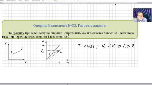 Физика10 ОК 033 Задача 3 Газовые законы. По графику приведённому на рисунке, определить как изменяется давление идеального газа при ...