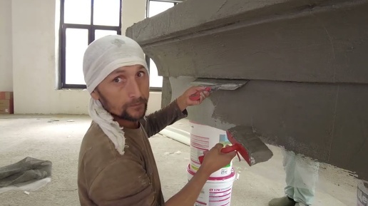 Обработка пенопластовых карнизов базовым армирующим слоем, Клей и Архитектурная Стеклотканевая Сетка