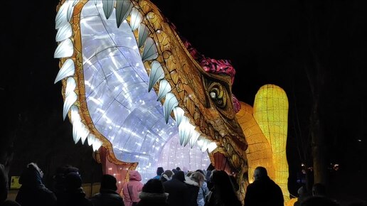 Тема динозавров на выставке световых фигур привлекает множество посетителей