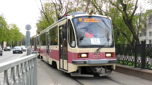 Трамвай Екатеринбурга УТМ 71-405 борт. №021/022 СМЕ маршрут 13 прибывает на остановку "Восточная"