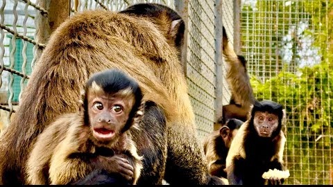 У капуцинов полдник вы только посмотрите как вожак Румба лопает вкусных РАКОВ!!!