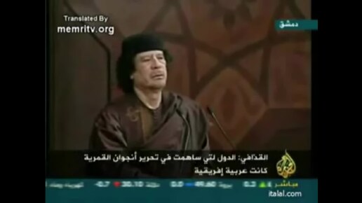 Пророческие слова Муаммара Каддафи на саммите Лиги арабских государств в Сирии (2008)