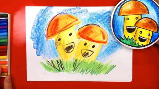 Как нарисовать ГРИБОЧКИ масляной пастелью