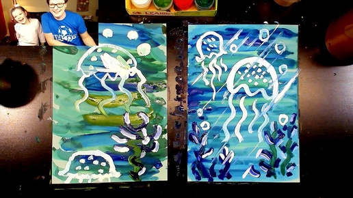 Морской мир МЕДУЗА красками ГУАШЬ