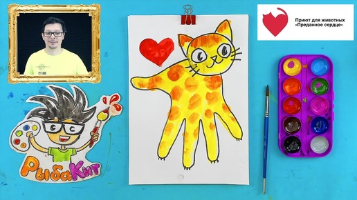 Рисуем КОШКУ из ЛАДОШКИ - уроки рисования от РыбаКит