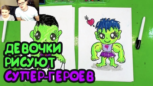 Как КАТЯ рисует ХАЛКА девочки рисуют на РыбаКит